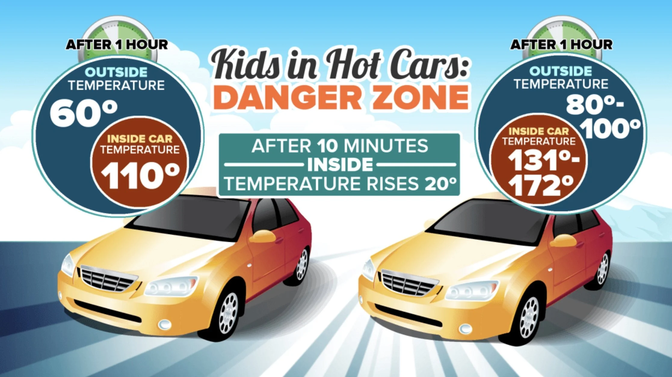 Kids in hot cars: when children are left in or gain access to cars, temperatures as low as 57 degrees can become deadly in minutes.